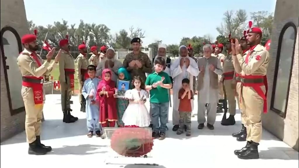 خیبر پختونخوا میں جامِ شہادت نوش کرنے والے پاک فوج کے بہادر سپوتوں کی عظیم قربانیوں کو خراجِ عقیدت پیش کرنے کیلئے پشاور گیریژن میں ایک پروقار تقریب منعقد کی گئی۔ تقریب میں شہداء کے لواحقین نے شرکت کی۔