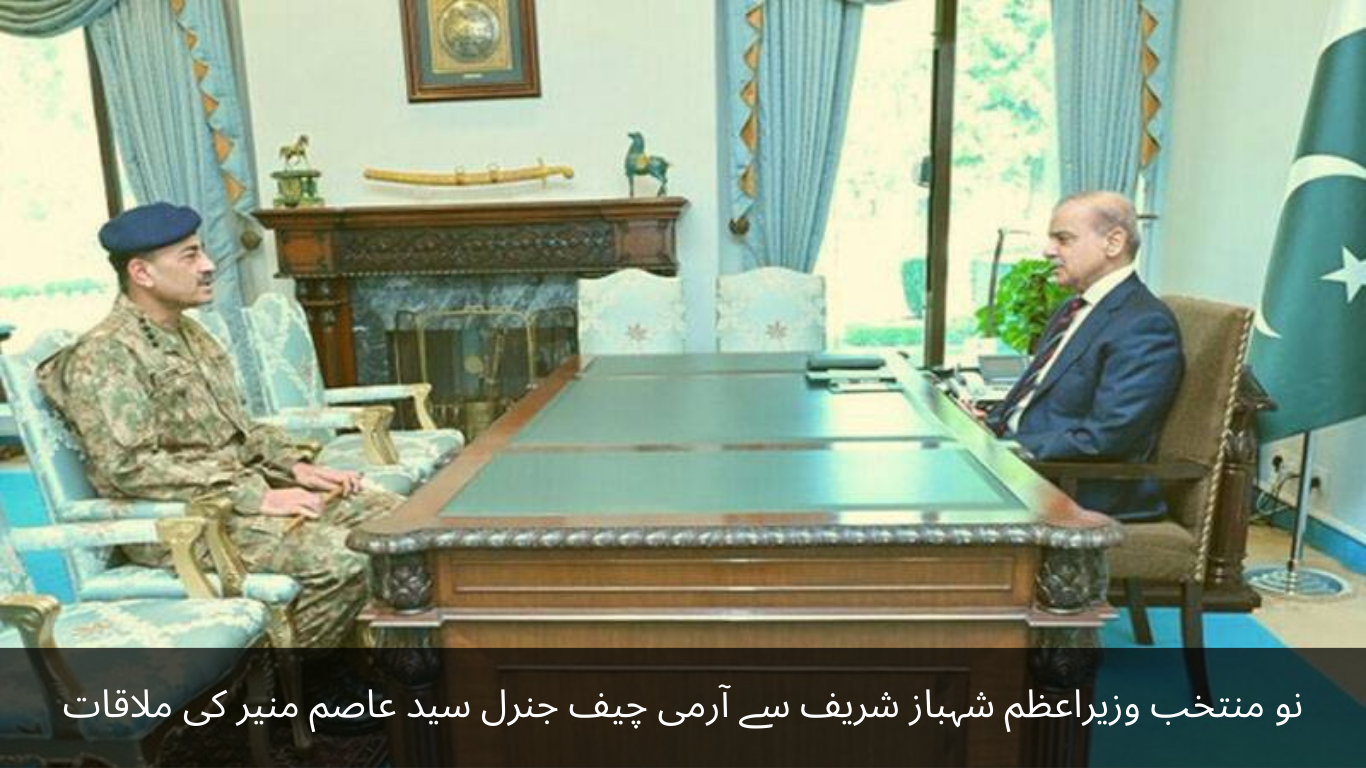 نو منتخب وزیراعظم شہباز شریف سے آرمی چیف جنرل سید عاصم منیر نے ملاقات کی۔ملکی سلامتی کے امور زیر غور آئے