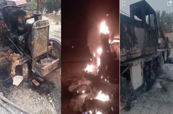 بنوں میں سرکلر روڈ منصوبے پر کام کرنے والی نجی کمپنی کے کیمپ پر نامعلوم عسکریت پسندوں نے دھاوا بول دیا، جس کے نتیجے میں کیمپ میں موجود بھاری مشینری کو نذرِ آتش کر دیا گیا۔