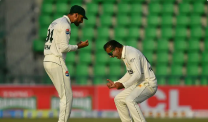 پاکستان کی جانب سے نعمان علی نے شاندار بولنگ کرتے ہوئے 6 وکٹیں حاصل کیں، ساجد خان نے 3 اور سلمان علی آغا نے ایک وکٹ حاصل کی ۔