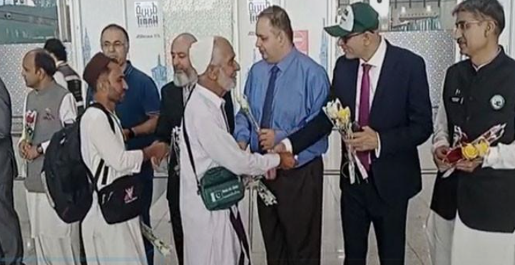 اسلام آباد: ترجمان وزارت مذہبی امور کے مطابق ڈی جی حج جدہ عبدالوہاب سومرو، ڈائریکٹر مدینہ زاہد سہیل نے استقبال کیا،عازمین حج پر پھول نچھاور کیے گئے اور تحائف پیش کیے گئے جبکہ سعودی ثقافتی خوش آمدیدی نغموں اور دف کی تھاپ نے فضا کو مزید روحانی اور یادگار بنا دیا ۔